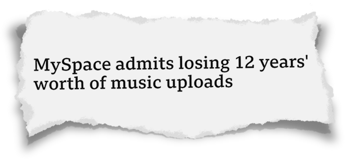 On March 18th, 2019, it came to light that MySpace lost all of its user content prior to 2015.